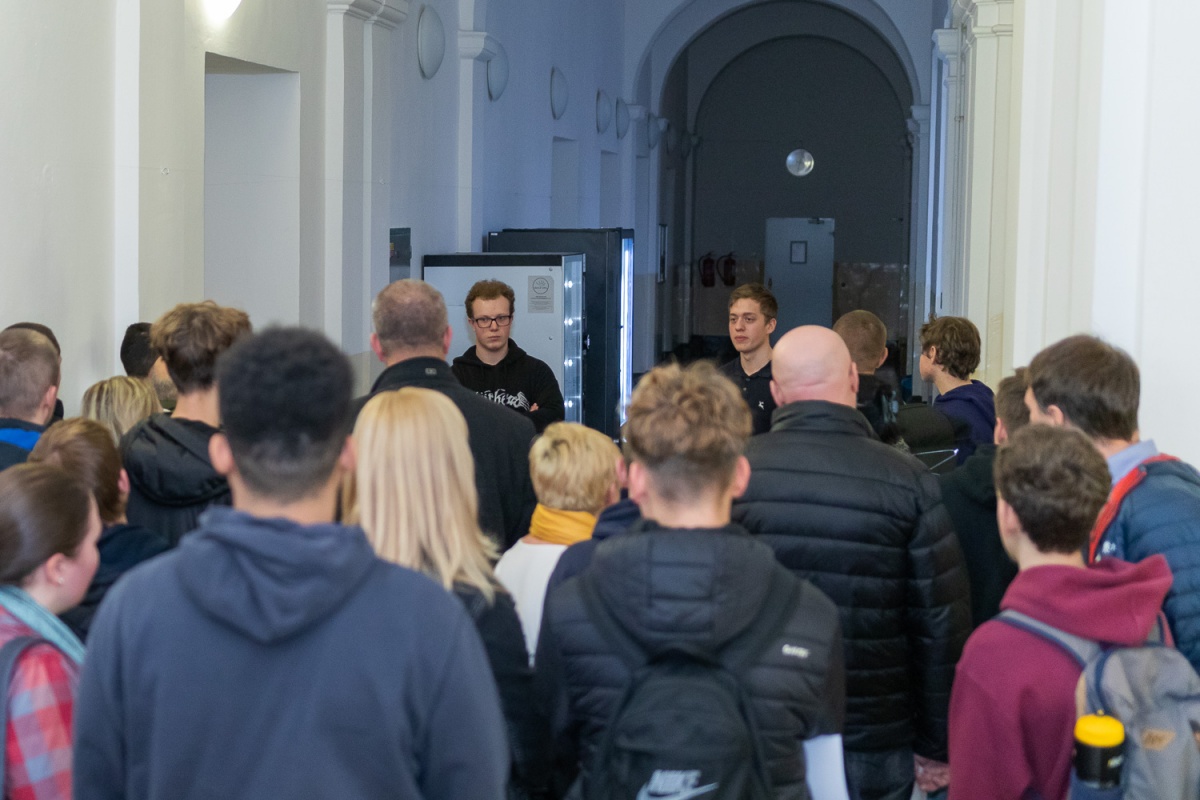 Ve čtvrtek 15. ledna navštívily třídy C2a, C2b a C2c areál MFF UK v Troji. Studenti si zopakovali základy fyziky a optických jevů při předvádění zajímavých pokusů. Aktivně zasahovali do průběhu přednášky a správně odpovídali na kladené otázky, u některých pokusů také asistovali.