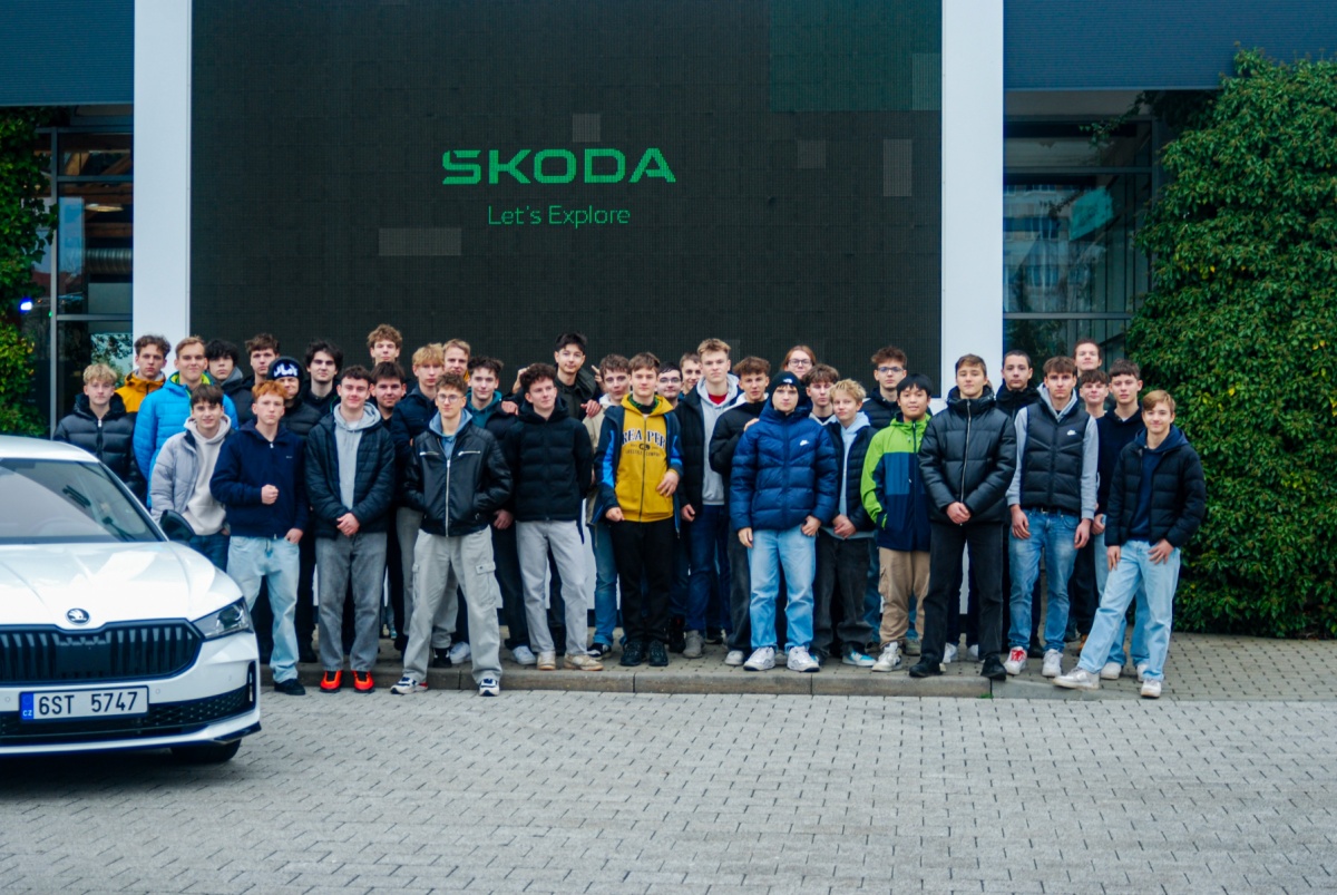 Skupina studentů tříd C1a a A2 si ve středu 17. 12. 2025 prohlédla se zájmem výrobní provozy, muzeum, depozitář automobilů, oddělení lisovny, svařovny a závěrečné montáže ve firmě Škoda Auto Mladá Boleslav. Žáci zde viděli i produkty firem Trucker, Siemens a Schuler, Kuka a dalších.